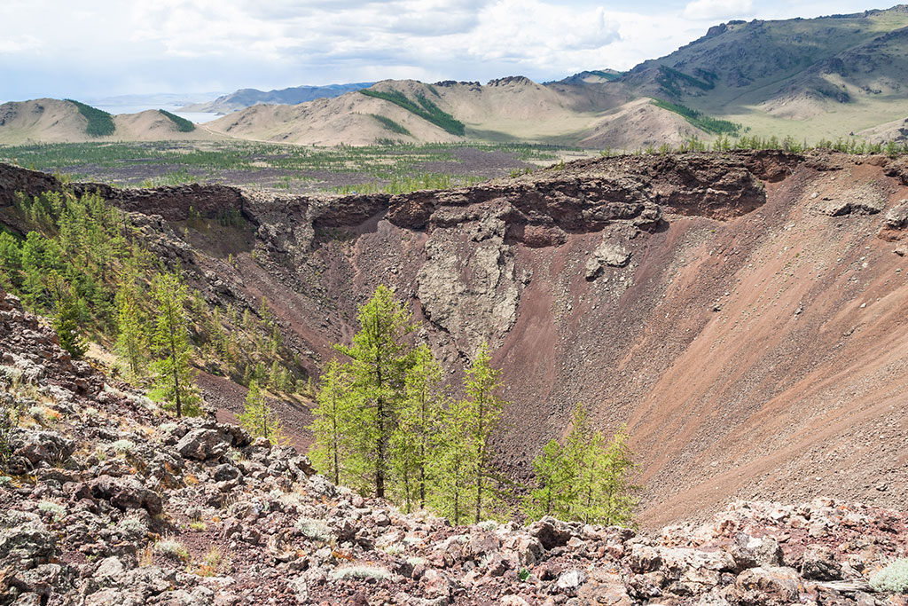 It was established to protect the spectacular mountain scenery and endangered species of flora & fauna. It's surrounded by the Khangai Mountains, which reach 3000 meters above the sea level. Over a comparatively small area where there are a dozen or so extinct volcanoes. In the craters, some of them are very tiny crystal- clears lakes. The Khorgo crater, situated at an altitude of 2.210 meters with a diameter of 20 meters and a depth of 70 to 80 meters, is the most interesting at all.