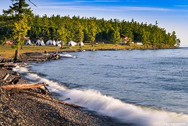 Lake Khuvsgul is Mongolia's largest and deepest lake. Located in the northernmost province, it is the largest tributary stream of Lake Baikal in Russia. 96 rivers and streams flow out of Khuvsgul, among them the Egiin River, which then joins the Selenge along its eventual path to Lake Baikal.