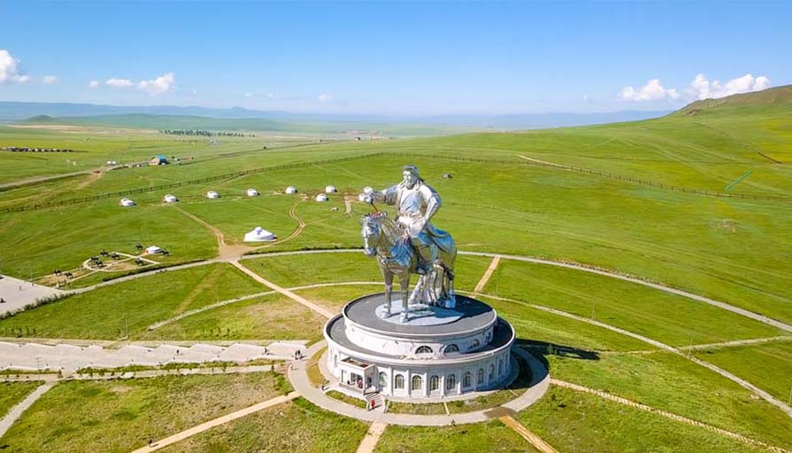 Take a tour of the Chinggis Khaan Statue, the biggest equestrian statue in the world - 40 meters tall stainless steel statue symbolically pointed east towards his birthplace, on the bank of the Tuul River at Tsonjin Boldog.
