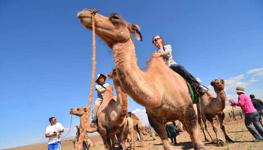 Visit a local nomad family and ride 2 humped camels. Get involved in their daily life, take a class on milking livestocks and play ankle bone games. In the evening, cook a traditional Mongolian barbecue under the instruction of the hostess.