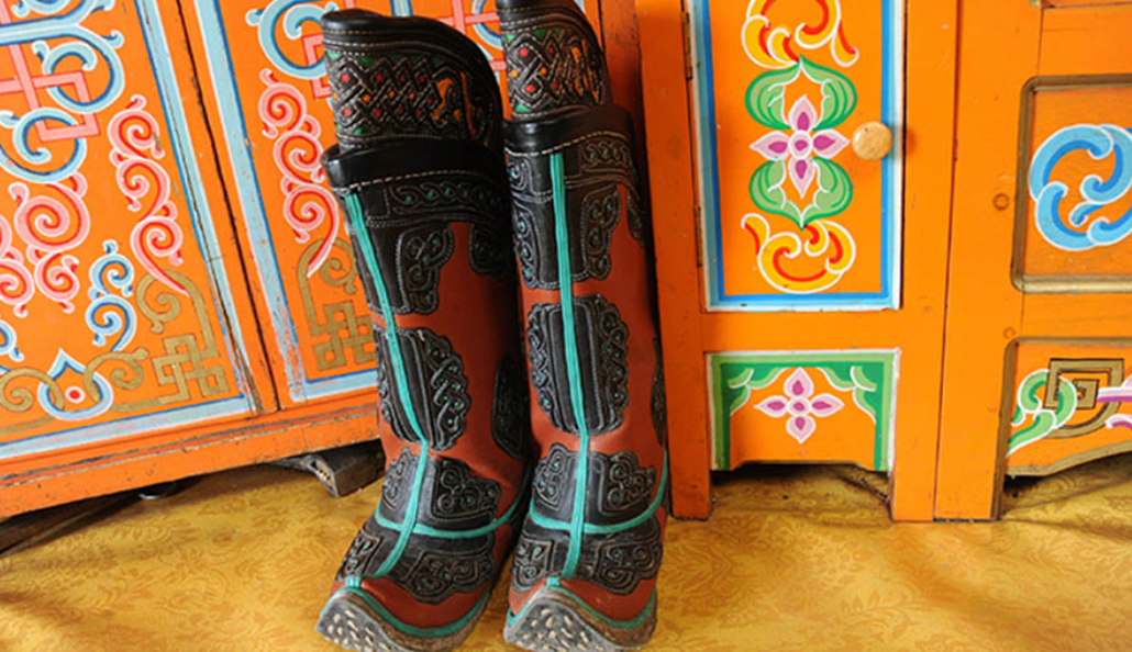 Mongolian boots are distinctive for their upturned toes. There are both historical and practical explanations for this:
