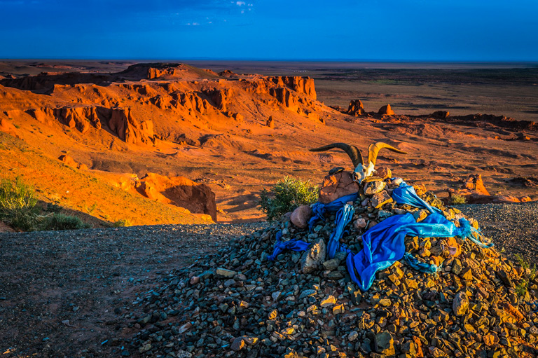 The Mongolian government established the Great Gobi National Park in 1975 and the UNESCO designated as the Great Gobi as the fourth largest Biosphere Reserve in the world in 1991. Mongolians consider that there are 33 different Gobi, where sandy desert occupies only 3 percent of the total territory. The area is often imagined as a lifeless desert like in many other parts of the world. Gobi Desert is a land of dinosaurs and it is the home for camel breeders rich with wildlife and vegetation. Dinosaur skeletons and their petrified eggs have been preserved here to the present day. Wild asses, camels, snow leopards, mountain sheep and gazelles flourish here, as do different types of flora.