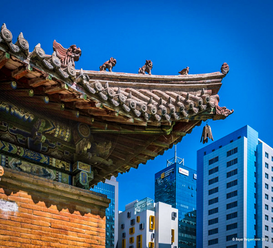 Ulaanbaatar is a unique city that represents 2 different aspects of living. One aspect, high rise buildings characterize the city center shows the modern lifestyle, however, the other, visitors arriving either from the Chinggis Khaan (Buyant-Ukhaa) airport or by train to the main railway would not fail to notice thousands of traditional Mongolian "Gers" in the vicinity, an area referred to by locals as "ger district" shows a glimpse of the nomad lifestyle.
