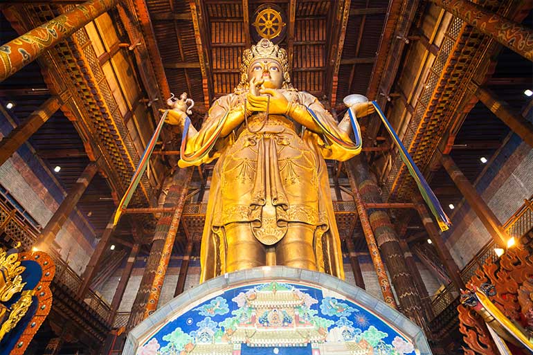 Janraisig God, Gandan MonasteryMongolia’s monasteries are the perfect place for you to disconnect from the modern world and reconnect with your soul. You don’t have to be religious to feel the peaceful calmness when you visit any one of Mongolia’s many monasteries. Allow their significance and rich history to remind you of simpler times, tuning out the noise in your life and inspiring you to tune into your spirituality.