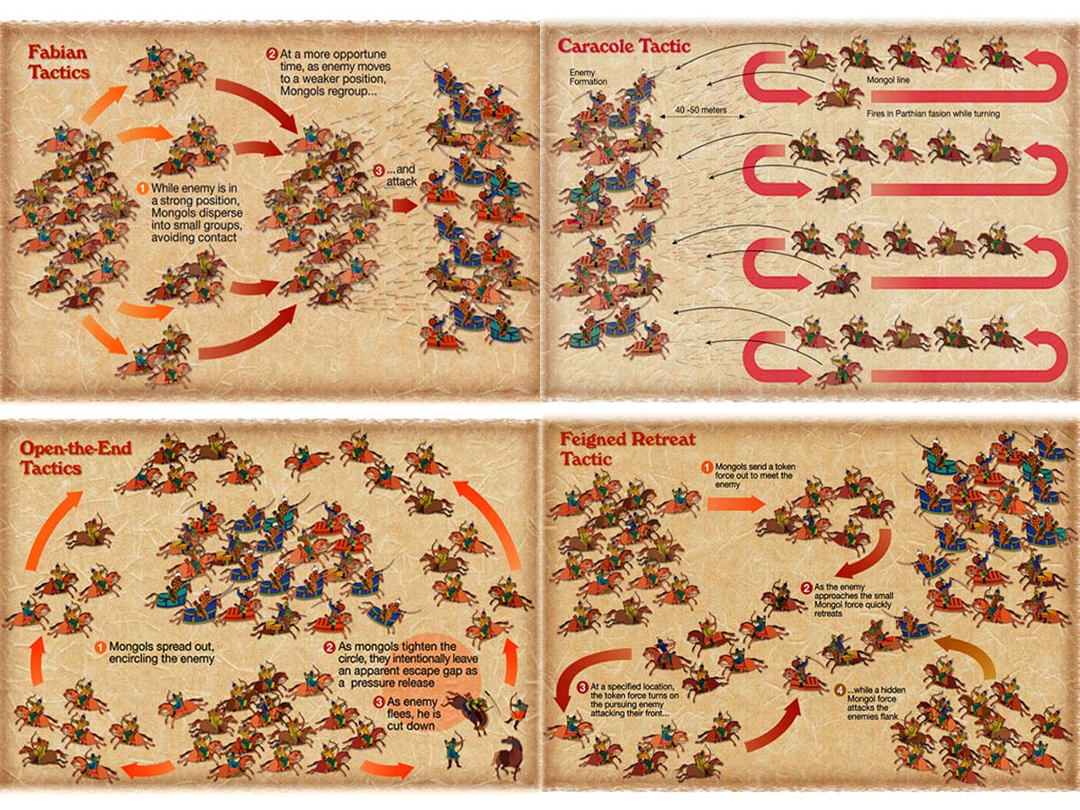 While the Kievan princes were oppressing their peasants to pay more tax for them, Mongol Khans were conquering civilizations which were much superior to the Kievan Rus in terms of their trade and economic development as well as military tactics. Therefore, many researchers believe that the Rus adopted some of their military tactics from the Mongols who must have had refined their own tactics from battle to battle. For instance, at the core of the Mongol army was the unit organization which could break down into tens, hundreds, thousands and so on, whenever necessary, for easier communication and swifter actions etc.