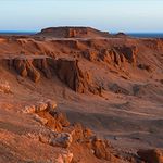 Bayanzag / Rich Saxaul / One of the famous places is Bayanzag, bottom of Ancient Sea which excited 60-70 million years ago where a lot of Paleontological findings have been discovered. The place is known as Flaming Cliffs so named by Roy Andrew Chapman American explorer, who had visited Mongolia in 1920. During the 2 years he searched through the Mongolian Gobi Desert & he found dinosaur fossils from Bayanzag, Nemekht. He brought his paleontological findings on 70 camels. Chapman presented Mongolia one large skeleton on show in the Ulaanbaatar Natural History Museum. He found 10 kinds of dinosaurs 8 were found from Mongolia. Also South Gobi has an oasis and most beautiful mountains Nemegt, Altan mountains and wide steppes and valleys with exotic wild animals like Asian wild ass, black tailed gazelle, and steppe wolf. The Gobi bears which very rare animal can be seen in this area. This is one most beautiful place among the 33 Gobies of Mongolia where travelers can see pre-historical rock paintings, caves where monks have made meditations and ruins of ancient temples and villages.