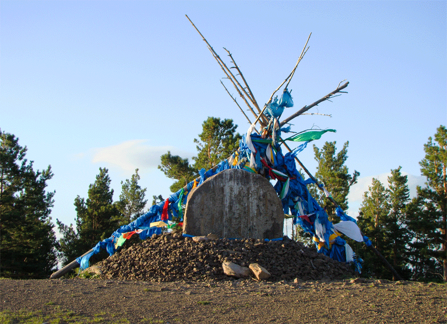 Ovoo and monument @Delüün BoldogMongolian script