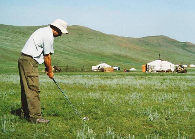 Mongolia's vast steppe landscape, covered with grasses is like a huge golf course. And the Gobi desert is Southern Mongolia is the only sand trap. There are many amateur golfers in Mongolia. Most of them live in the capital city, Ulaanbaatar.