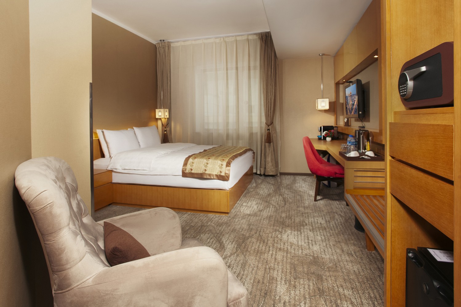 Additional services include a business center, laundry service, and airport transfer assistance. Rooms are well-appointed with air conditioning, minibars, flat-screen TVs, safes, work desks, and private bathrooms with complimentary toiletries and hair dryers.