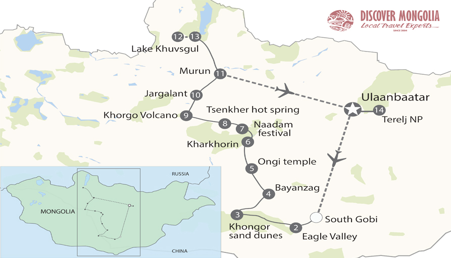 It was a customized trip based on the standard "Discover Mongolia Tour - 14 days", as we only had availability for 13 days.