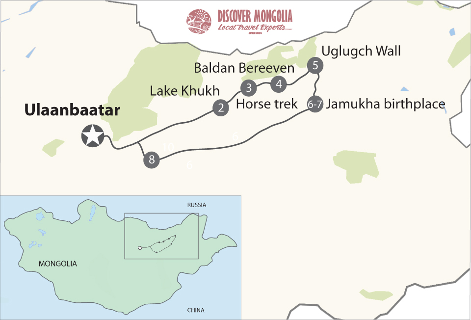 Chinggis Khaan conquered lands riding his 8 light bay horses, which none of his entourage was allowed to touch. But at this time, his geldings are waiting just for you in Khentii National Park- a beautiful combination of forest, mountain, steppe, rivers, and lakes. To evoke the spirit and time of Genghis Khan, each participant can wear traditional costumes and accessories of the time, while riding through the landscape that has not much changed since the time of Chinggis Khaan.