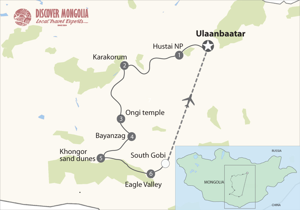 A couple of major religious and historical sites - Kharkhorin and Ongi - are included conveniently after each other. During the whole trip, you will see the amazing shifts in natural scenes and its components. Find out more in the tour itinerary below.