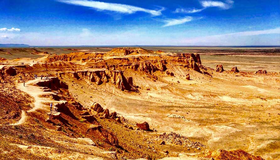 Drive to the Bayanzag, also known as the Flaming Cliffs, where the first dinosaur eggs were discovered in 1922 by Roy Chapman Andrews. In this huge paleontological site, you will have a chance to walk on the ground where the Dinosaurs once roamed 60 million years ago.